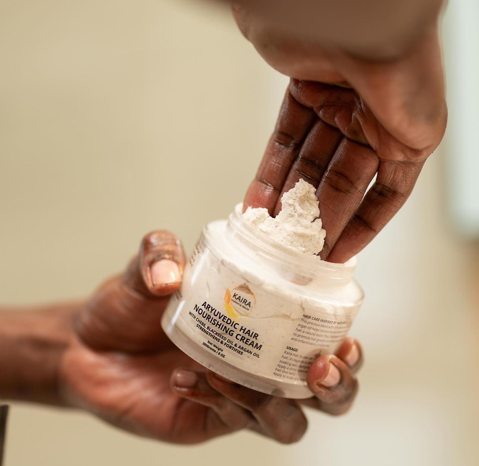 The Ayurvedic Hair Butter is a luxurious treatment crafted with traditional Ayurvedic ingredients to nurture your hair from root to tip. Its rich, creamy texture penetrates deeply to hydrate dry strands, repair damage, and reduce frizz, while also stimulating the scalp for healthier growth. Regular use strengthens weak hair, restores natural shine, and protects against breakage, leaving your locks soft, manageable, and full of life.
