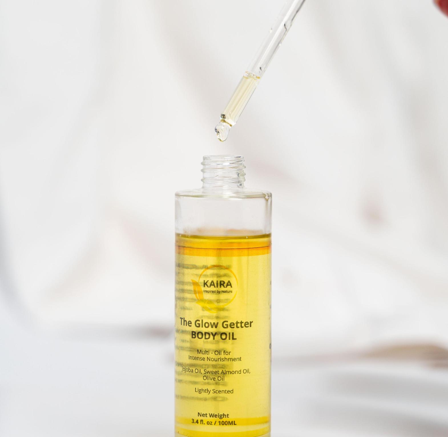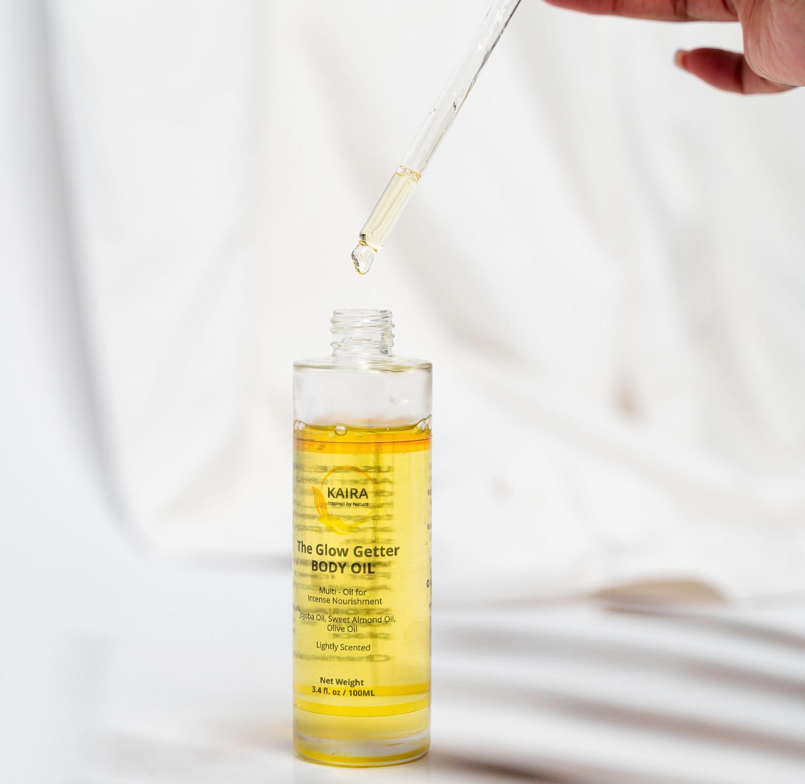 The Glow Getter Body Oil is designed to deeply nourish, soften, and illuminate your skin with a lightweight formula that absorbs quickly without greasiness. Enriched with a blend of natural oils and antioxidants, it replenishes moisture while enhancing your skin’s natural radiance, making it smooth to the touch and visibly glowing. Whether used after a shower, as part of your self-care ritual, or to add a luminous finish before stepping out, this body oil is your go-to for hydration and confidence in every drop.