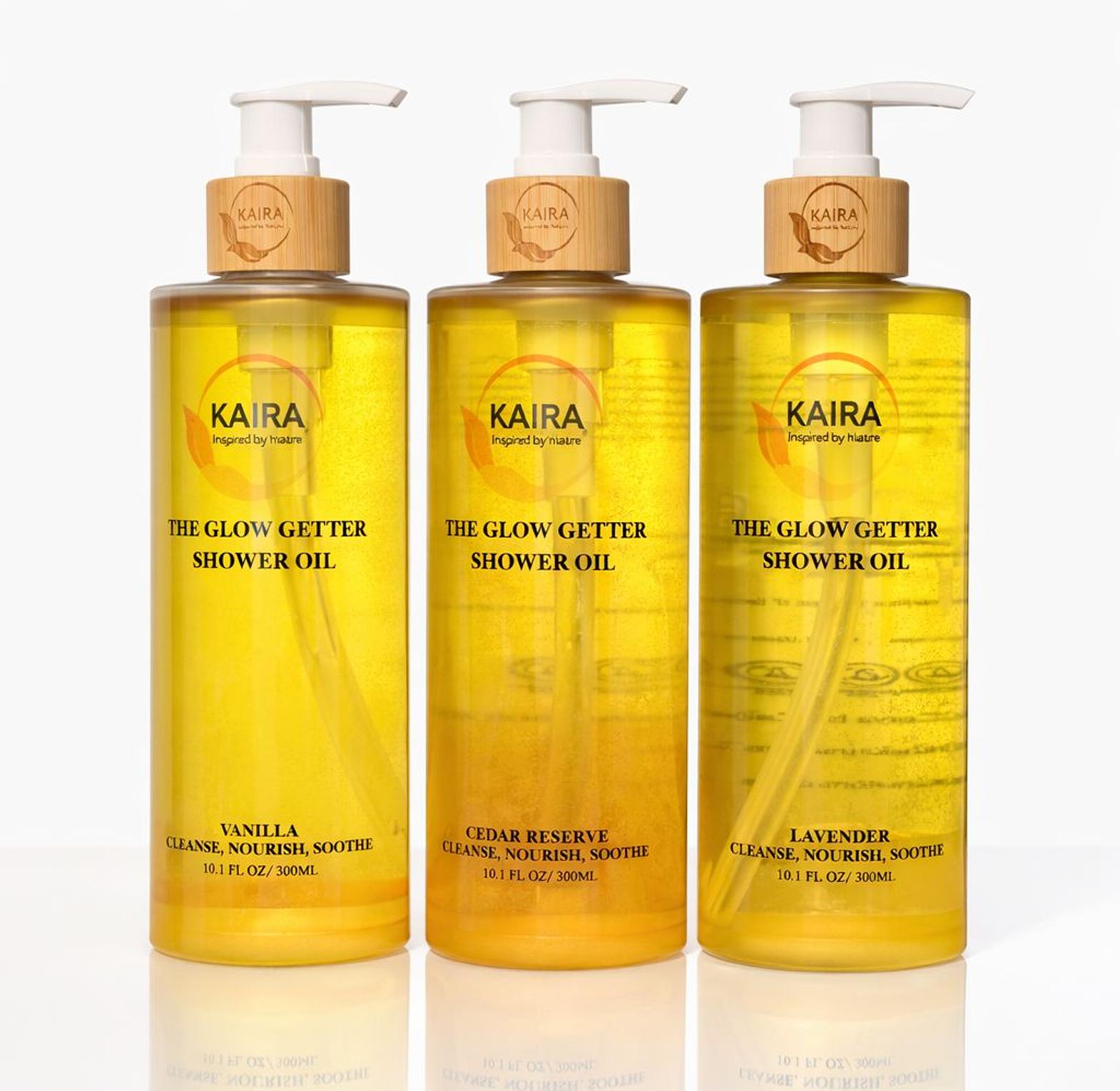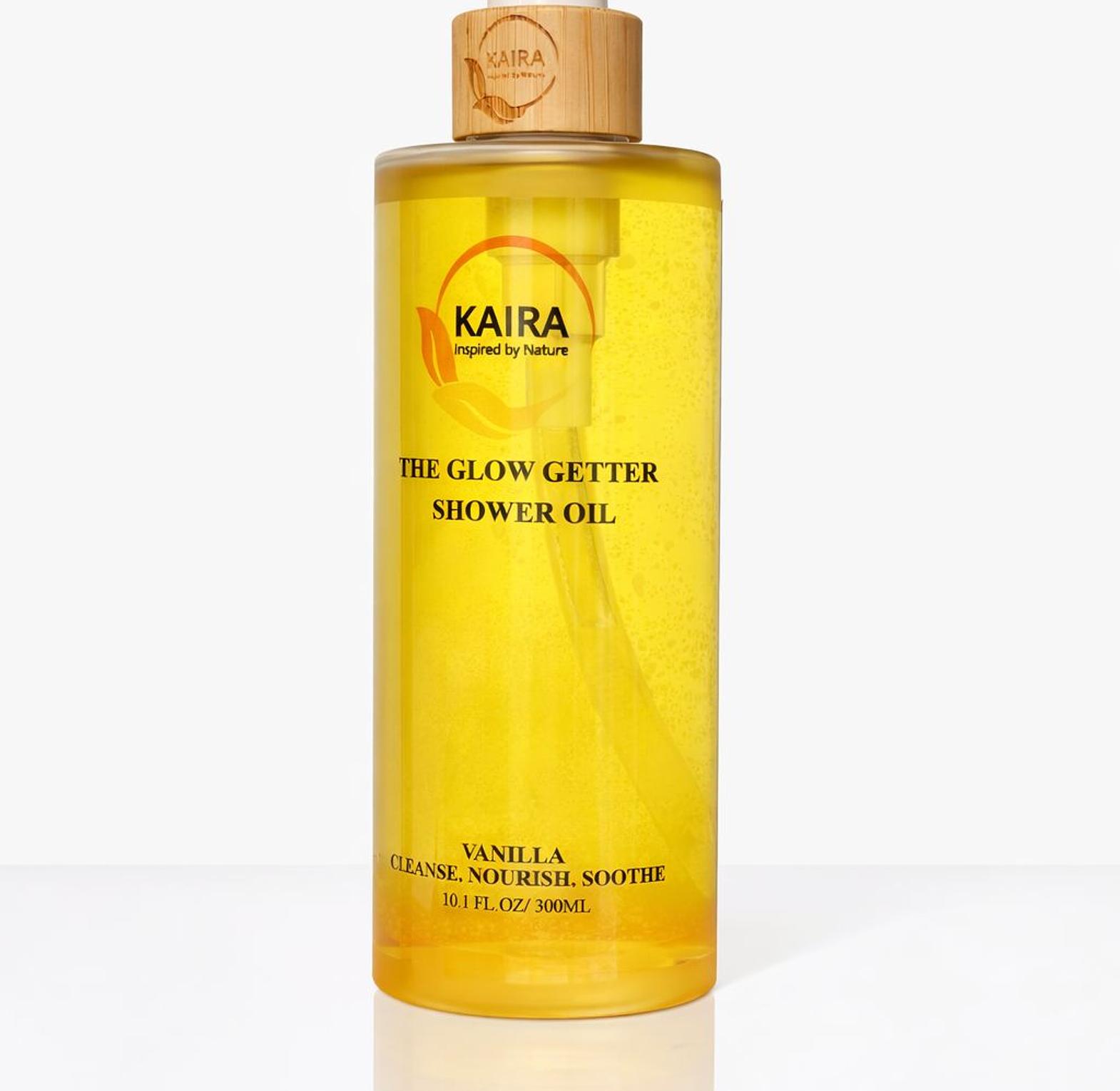 SKINCARE INSPIRED BY NATURE: A Cleansing and Soothing formula that nourishes. Indulge your senses with Kaira’s Cleansing and Soothing Shower Oil, a beautifully unique shower experience formulated with skin loving ingredients that both cleanses and pampers your skin. This innovative formula transforms into a rich, softening foam upon contact with water, leaving behind a delightful and delicate Vanilla fragrance that lingers on your skin long after your shower.