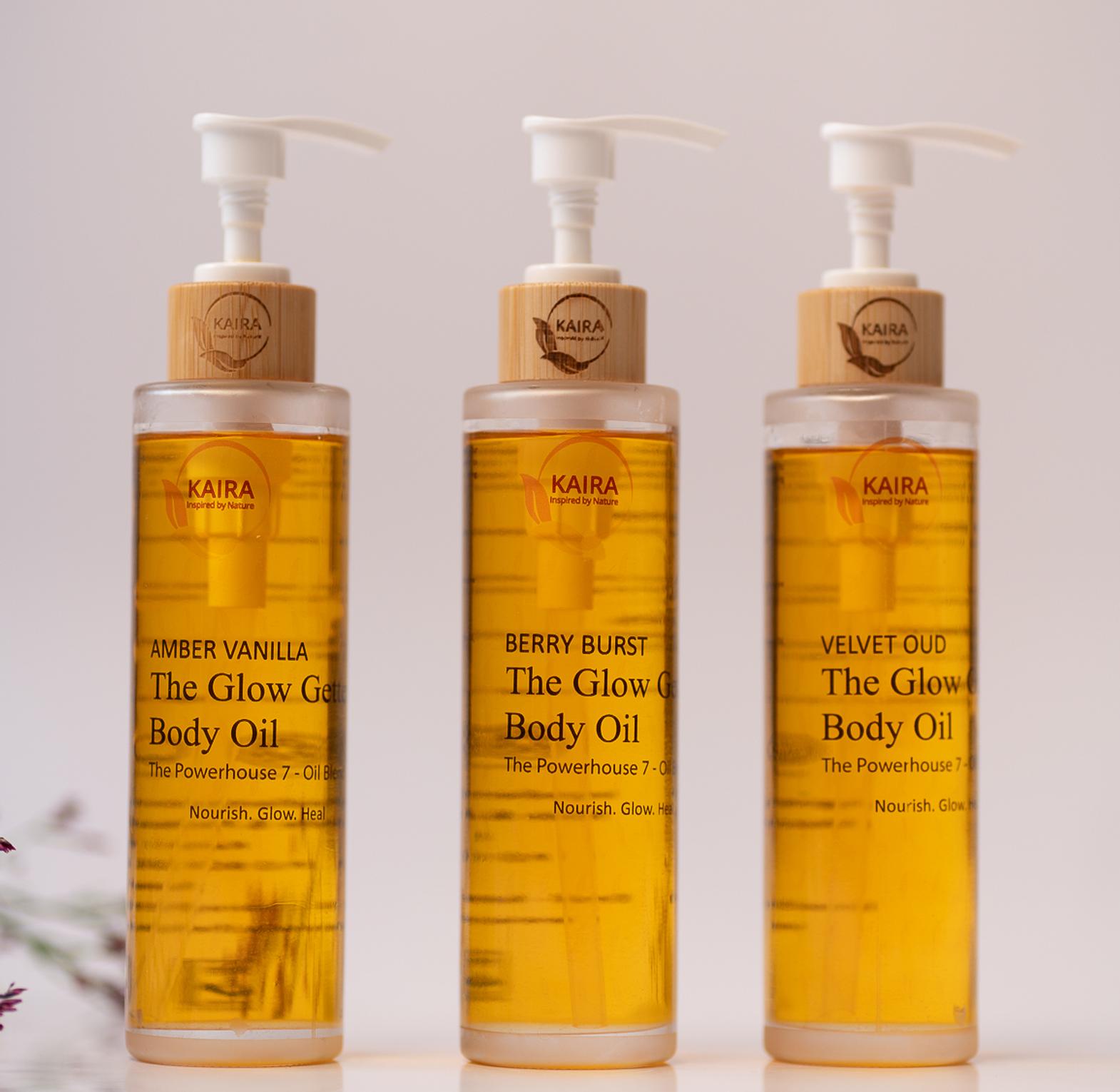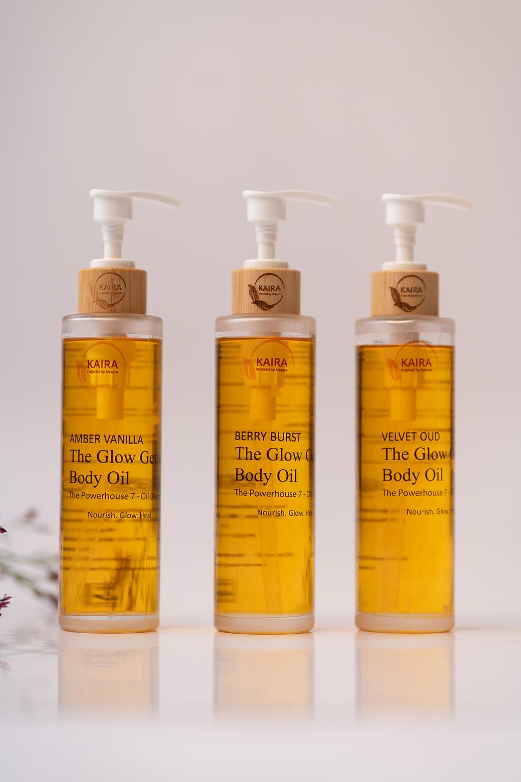 Three Piece Set Body Oil Set - Select any three of the Glow Getter Body Oil and enjoy an exclusive bundle deal designed to keep your skin nourished, radiant, and silky smooth.