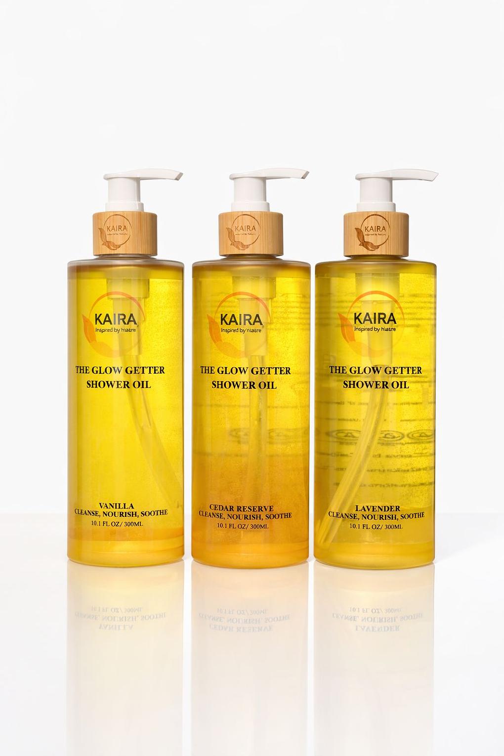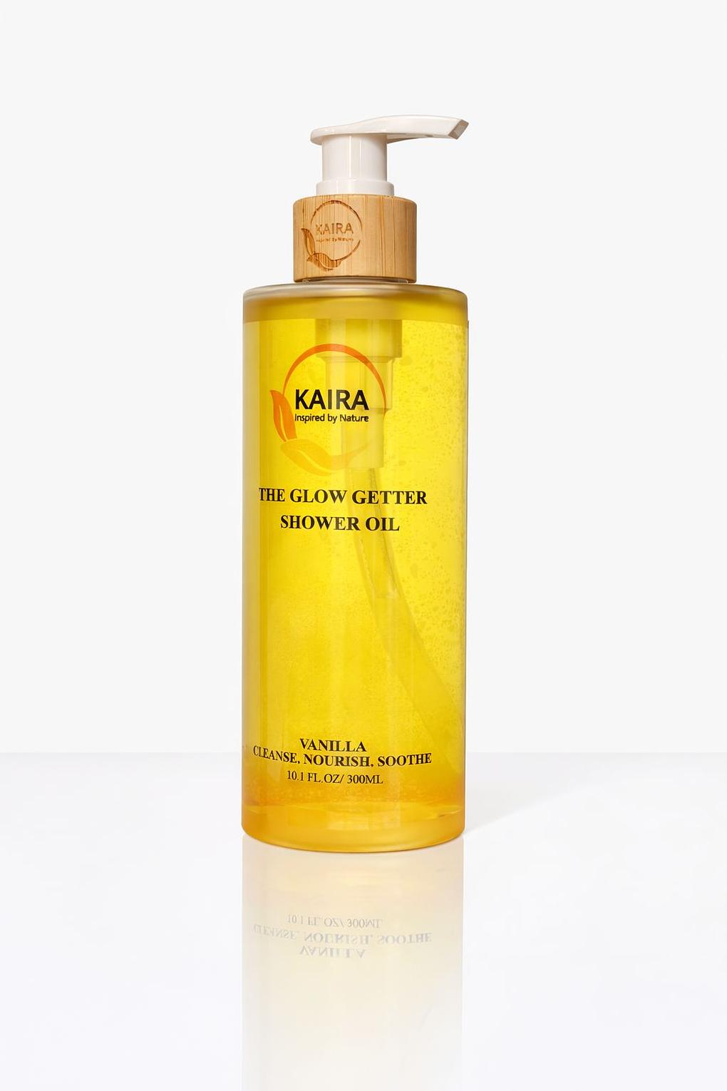 SKINCARE INSPIRED BY NATURE: A Cleansing and Soothing formula that nourishes. Indulge your senses with Kaira’s Cleansing and Soothing Shower Oil, a beautifully unique shower experience formulated with skin loving ingredients that both cleanses and pampers your skin. This innovative formula transforms into a rich, softening foam upon contact with water, leaving behind a delightful and delicate Vanilla fragrance that lingers on your skin long after your shower.