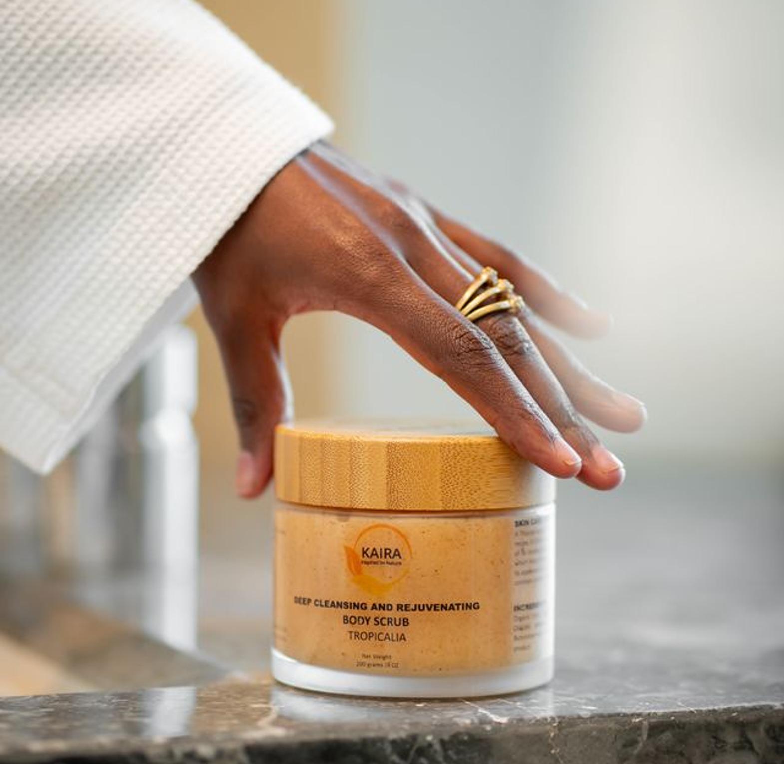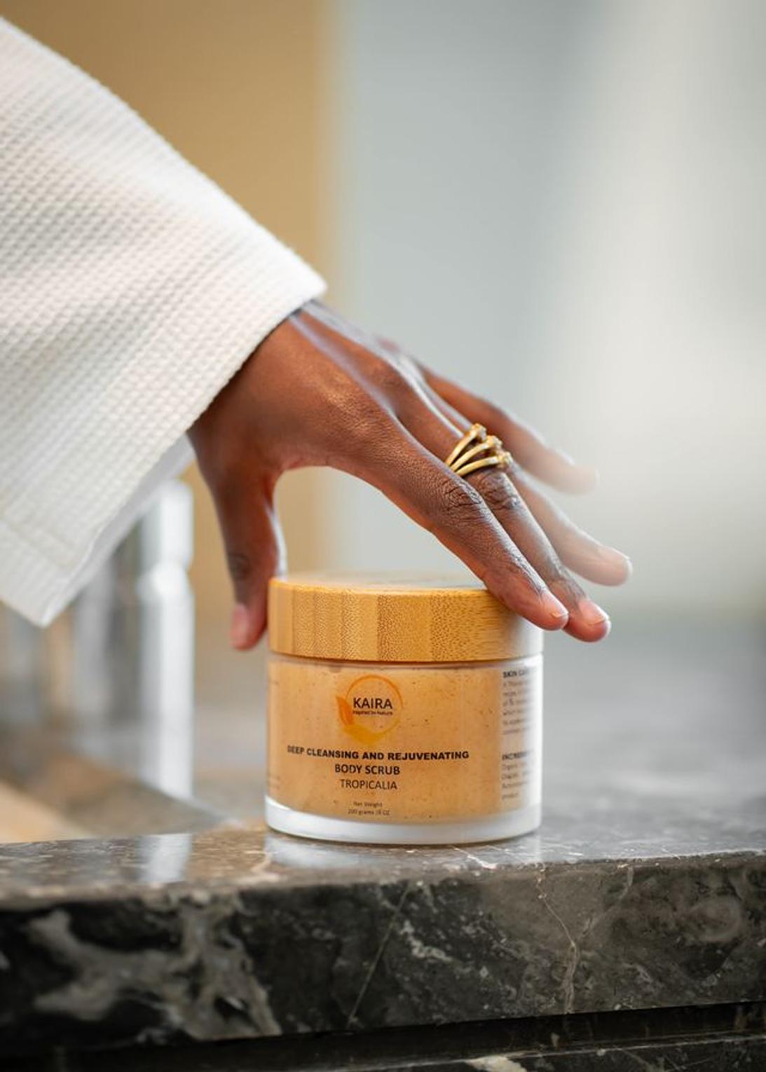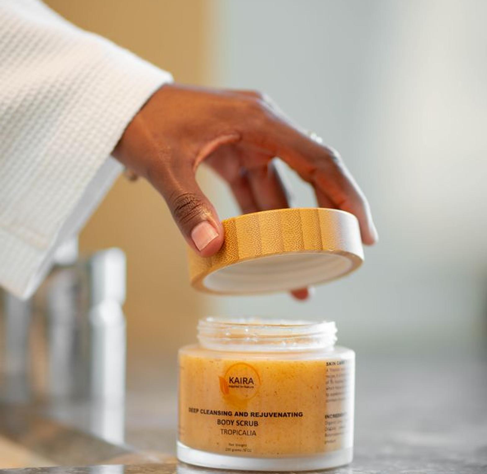 DEEP CLEANSING AND REJUVENATING - A Tropical party for your skin! The Tropicalia Body Scrub has a special recipe,  it is formulated to minimize orange peel skin effect, while the scent of its tropical fruits charmes your senses. A blend of  natural ingredients which helps to deeply cleanse your skin, moisturize your skin and improve its appearance. Also infused with natural oils which softens your skin and combats dryness while ensuring your skin stays smooth and velvety.